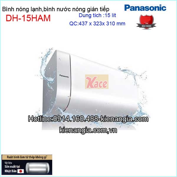 • Bình nóng lạnh 15 lít phòng tắm Panasonic DH-15HAM,Bình nước nóng gián tiếp dùng điện Panasonic công nghệ hiện đại tiên tiến,thiết kế nhỏ gọn,đa tính năng dễ lựa chọn cho nhiều nhu cầu sử dụng khác nhau như gia đình,căn hộ,nhà phố,nhà cho thuê,khách sạn...với sự an toàn,chống giật,mang lại sự trãi nghiệm thú vị cho người dùng,bảo hành chính hãng,giá rẻ,chiết khấu cao tại KIẾN AN GIA-0914.160.488