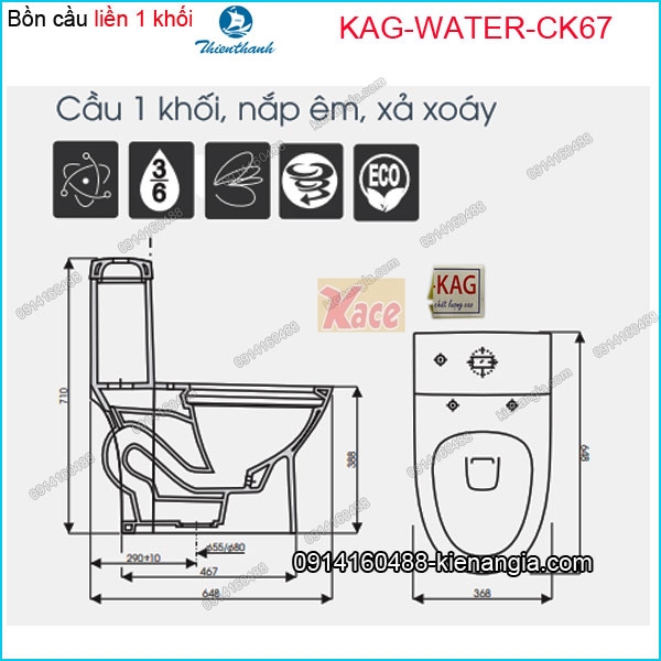 Bồn cầu 1 khối phòng tắm nhỏ Thiên Thanh Water - CK67 ,bàn cầu liền khối,bệt két liền Thiên Thanh chính hãng chiết khấu cao KIẾN AN GIA.Bồn cầu một khối Thiên Thanh đẹp,gọn,giá rẻ ,công nghệ NANO kháng khuẩn,khó bán bẩn,dễ lau chùi vệ sinh,thích hợp dùng cho gia đình,nhà phố,khách sạn,nhà cho thuê trung cao cấp.Bạn nên chọn mua combo trọn bộ bàn cầu Thiên Thanh,lavabo Thiên Thanh,sen vòi nóng lạnh hay sen vòi lạnh bảo hành 5 năm tại 0914.160.488.Xem Clip sản phẩm TẠI ĐÂY