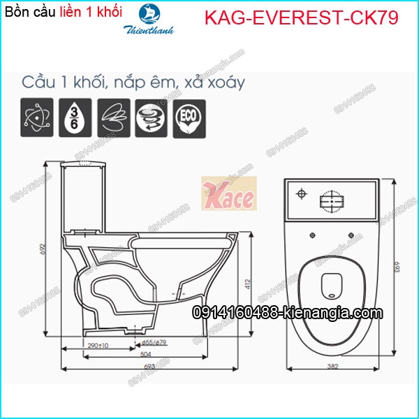 Bồn cầu Vuông 1 khối Thiên Thanh chinh hãng KAG-EVEREST-CK79,bàn cầu liền khối,bệt két liền Thiên Thanh chính hãng chiết khấu cao KIẾN AN GIA.Bồn cầu một khối Thiên Thanh đẹp,gọn,giá rẻ ,công nghệ NANO kháng khuẩn,khó bán bẩn,dễ lau chùi vệ sinh,thích hợp dùng cho gia đình,nhà phố,khách sạn,nhà cho thuê trung cao cấp.Bạn nên chọn mua combo trọn bộ bàn cầu Thiên Thanh,lavabo Thiên Thanh,sen vòi nóng lạnh hay sen vòi lạnh bảo hành 5 năm tại 0914.160.488.Xem Clip sản phẩm TẠI ĐÂY