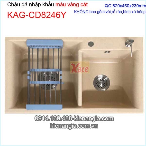 • Chậu đá 2 hộc vuông màu vàng cát KAG-CD8246Y giá rẻ KIẾN AN GIA-0914.160.488