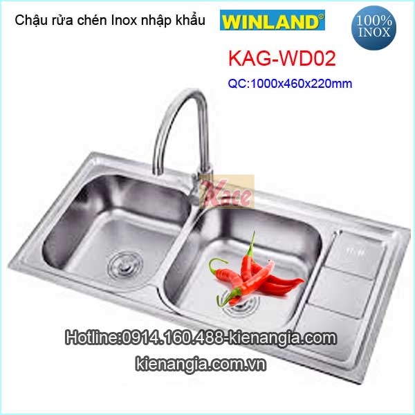 • Chậu inox nhập khẩu 2 hộc 1 cánh Winland KAG-WD02,chậu rửa bát bằng inox sáng bóng đa năng cho nhà bếp gia đình tiện ích ,chính hãng,giá rẻ KIẾN AN GIA-0914.160.488.Dùng với vòi bếp lạnh hay vòi nóng lạnh đều thích hợp