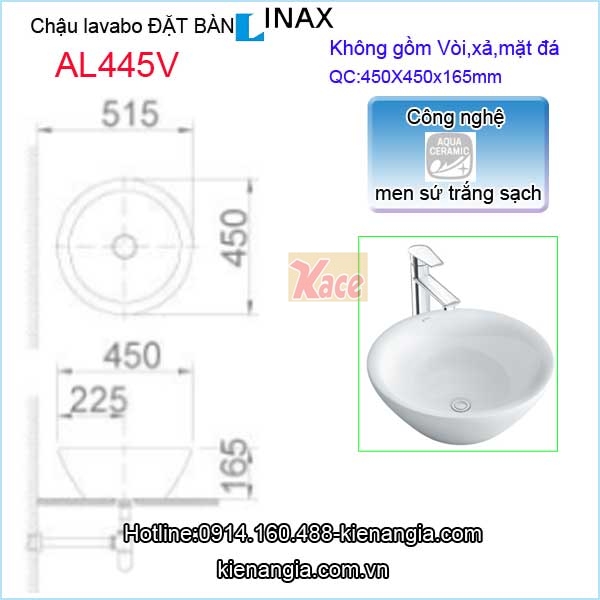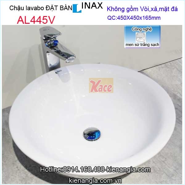 Chậu lavabo đặt bàn Aqua ceramic Inax AL445V,lavabo phòng tắm,lavabo rửa mặt nhà phố,khách sạn,căn hộ chung cư,resort,biệt thự ...rất sang trọng,hiện đại ,mẫu mới 2019 men sứ sáng bóng kháng khuẩn chính hãng Inax,chiết khấu cao,giá rẻ KIẾN AN GIA 091.160.488 dùng với vòi lavabo nóng lạnh hay vòi lạnh đều tốt