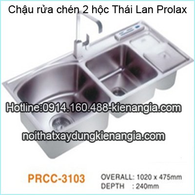 Chậu rửa chén 2 hộc 102x47.5 x24cm Thái Lan Prolax PRCC-3103