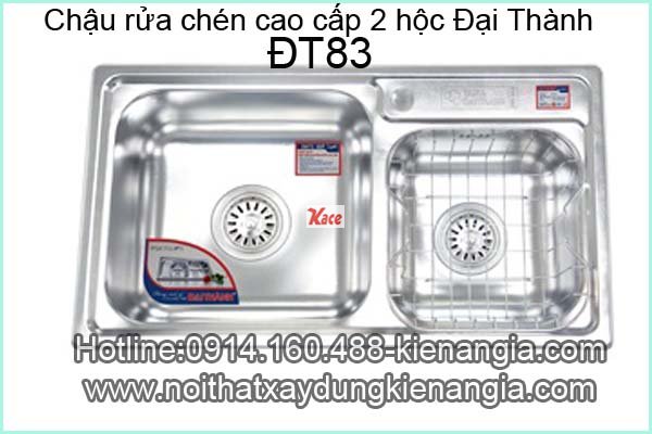 Chậu rửa chén inox 304 2 hộc 75x42 cm Đại Thành ĐT83 DX42003