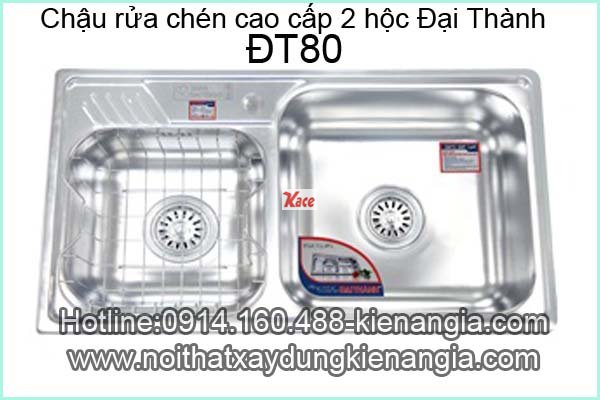 Chậu rửa chén inox 304 2 hộc 80x43 x21cm Đại Thành ĐT80 dập liền khối DX42000