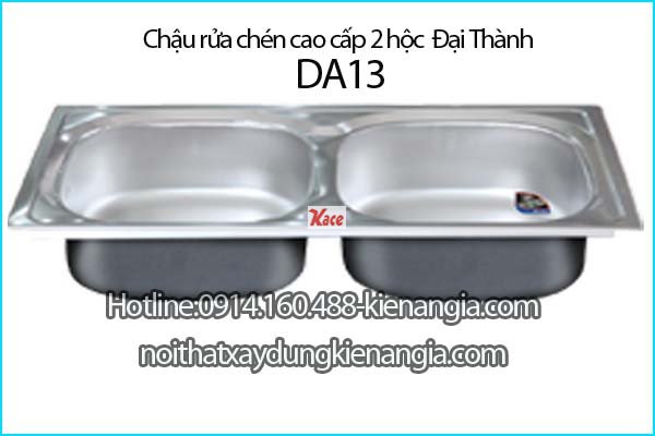 Chậu rửa chén thế hệ mới 2 hộc 80x52 cm Đại Thành ĐA13 SUS201 dập liền khối DX12052