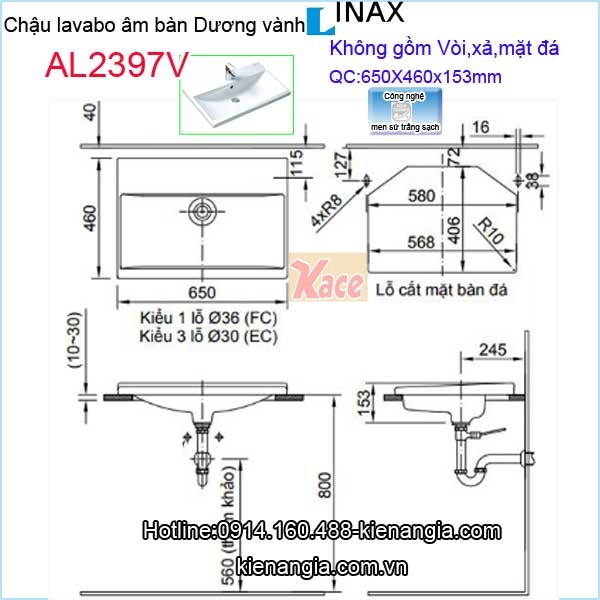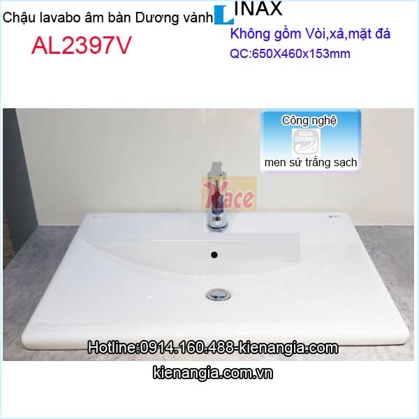Chậu rửa mặt dương vành Aqua ceramic Inax AL2397V,lavabo âm bàn vành trên mặt đá công nghệ siêu sạch,kháng khuẩn,trắng sáng chính hãng Inax giá rẻ chiết khấu cao KIẾN AN GIA-0914.160.488 cho khách sạn,căn hộ,nhà phố,resort,biệt thự