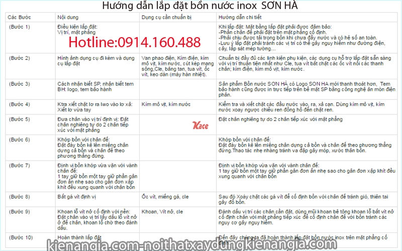 Hướng dẫn lắp đặt bồn nước inox Sơn Hà Masuno
