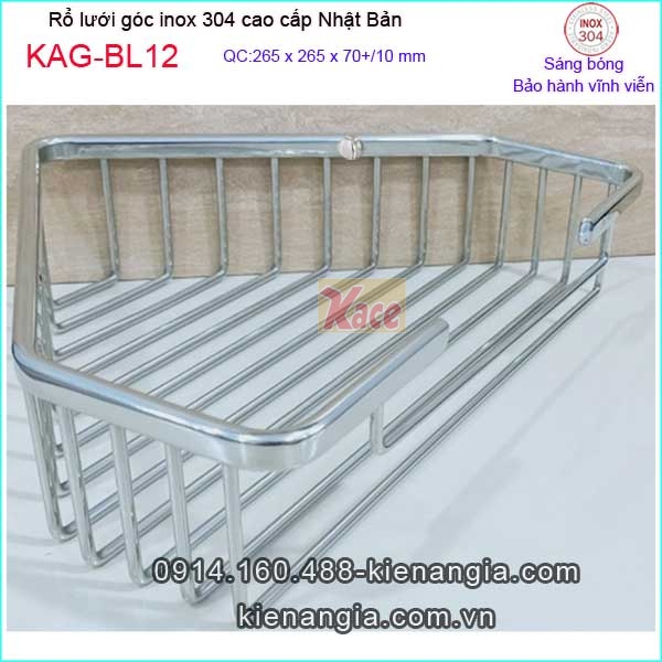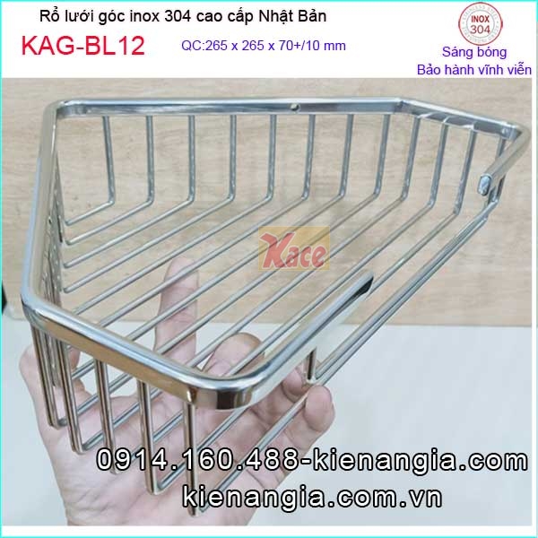 Kệ rổ góc lớn 265 x 265 mm ,khay lưới inox 304 Nhật Bản KAG-BL12