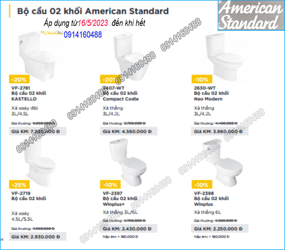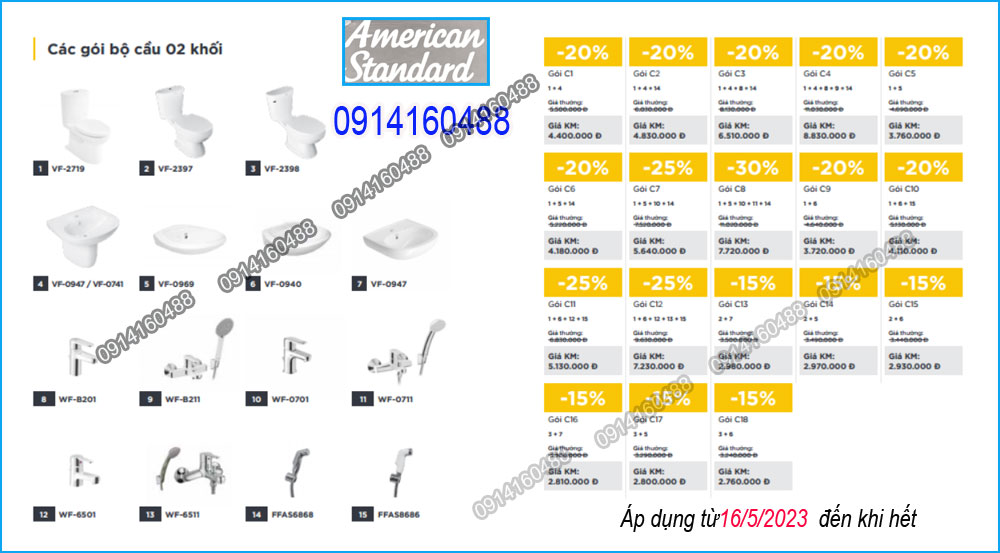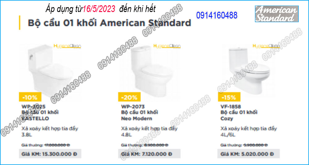 Khuyến mãi 2023 Thiết bị vệ sinh American standard cực sốc với nhiều gói KM hấp dẫn,tiết kiệm từ 20 % đến 40 % (tùy theo mẫu).