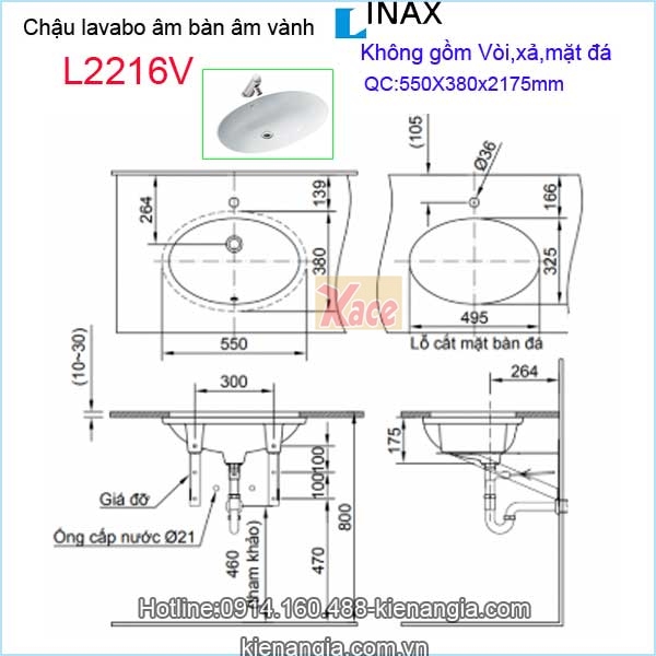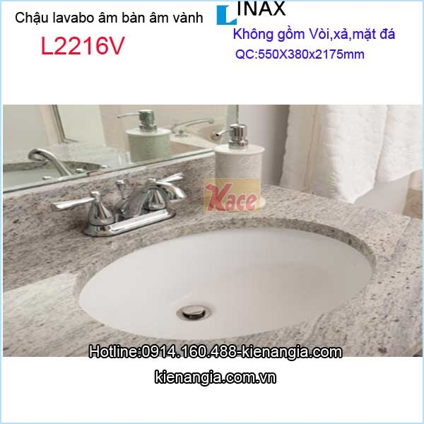 Lavabo âm bàn âm vành Inax-L2216V,chậu rửa mặt âm bàn Inax,lavabo âm mặt đá Inax men sáng bóng công nghệ Aqua ceramic siêu sạch, chính hãng chiết khấu cao giá rẻ KIẾN AN GIA-0914.160.488 cho phòng tắm nhà phố,khách sạn,resort,biệt thự rất đẹp,sang trọng .Dùng kết hợp với vòi lavabo nóng lạnh hay vòi lạnh đều đẹp