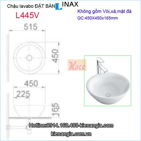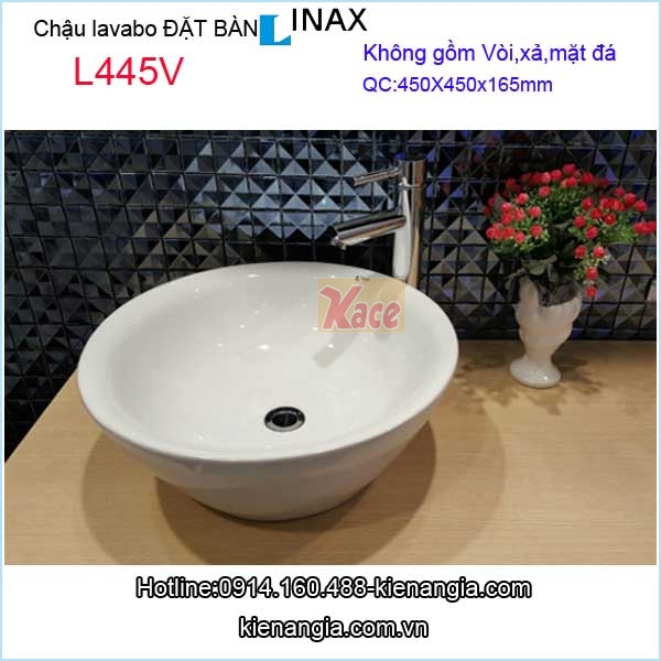 Lavabo Inax đặt bàn,tô sứ Inax L445V,chậu lavabo phòng tắm,lavabo rửa mặt nhà phố,khách sạn,căn hộ chung cư,resort,biệt thự ...rất sang trọng,hiện đại ,mẫu mới 2019 men sứ sáng bóng chính hãng Inax,chiết khấu cao,giá rẻ KIẾN AN GIA 091.160.488 dùng với vòi lavabo nóng lạnh hay vòi lạnh đều tốt