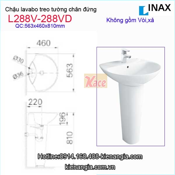 Lavabo treo tường có chân đứng INAX L288V-L288VD,chậu rửa mặt Inax chân dài rất chắc chắn,an toàn cho người già ,trẻ em và thích hợp cho trường học,khu công cộng,khách sạn.Chậu lavabo Inax có thể dùng vòi nóng lạnh hay vòi lạnh.Men sứ bóng sáng,dễ vệ sinh,chính hãng Inax chiết khấu cao KIẾN AN GIA 0914.160.488