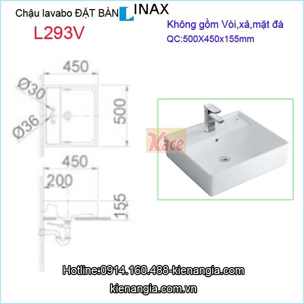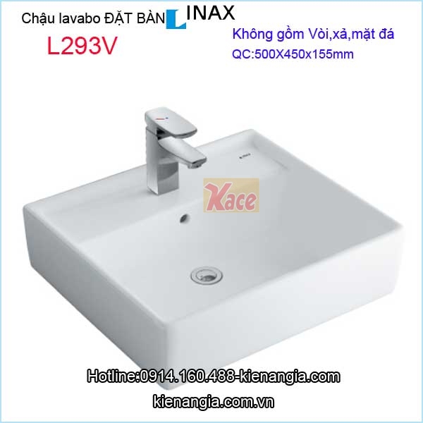 Lavabo vuông Inax đặt bàn L293V,chậu lavabo phòng tắm,lavabo rửa mặt nhà phố,khách sạn,căn hộ chung cư,resort,biệt thự ...rất sang trọng,hiện đại ,mẫu mới 2019 men sứ sáng bóng chính hãng Inax,chiết khấu cao,giá rẻ KIẾN AN GIA 091.160.488 dùng với vòi lavabo nóng lạnh hay vòi lạnh đều tốt