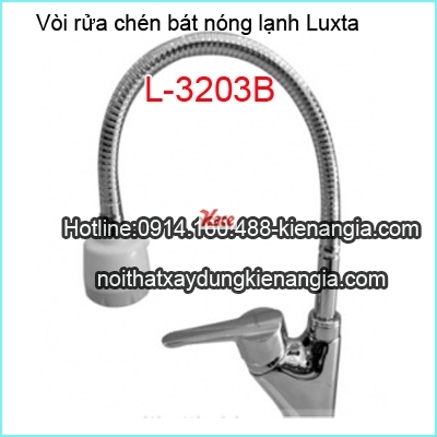 Vòi bếp,Vòi rửa chén nóng lạnh lò xo Luxta L-3203B chính hãng chiết khấu cao KIẾN AN GIA dùng tốt cho chậu lớn,loại gắn chậu,cần lò xo bẻ được,đầu vòi 2 chế độ phun mưa và xả bọt