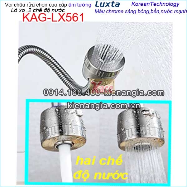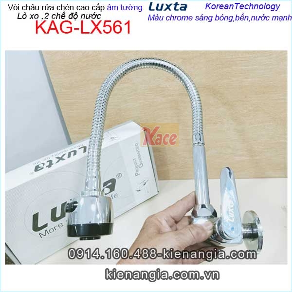 • Vòi chậu rửa chén âm tường lò xo 2 chế độ Luxta Korea KAG-LX561,vòi bếp lạnh cao cấp công nghệ Korea,vòi đẹp,bền,nước mạnh dùng tốt cho chậu 1 hộc,2 hộc ,giá rẻ chiết khấu cao KIẾN AN GIA-0914.160.488