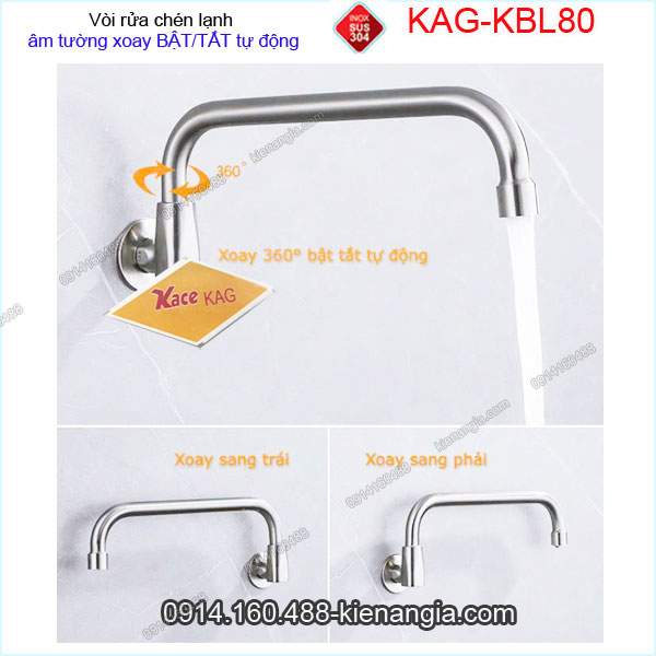Vòi rửa chén âm tường inox sus304 KAG-KBL80